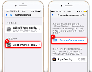 - 設定 → 一般 → 描述檔 → 點選「Ashermed」→ 點選「信任『Ashermed』 → 點選「信任」即完成設定